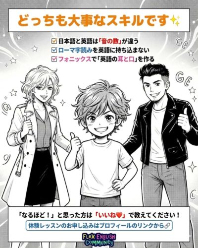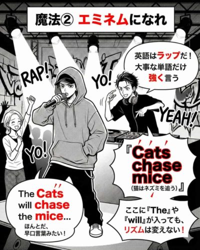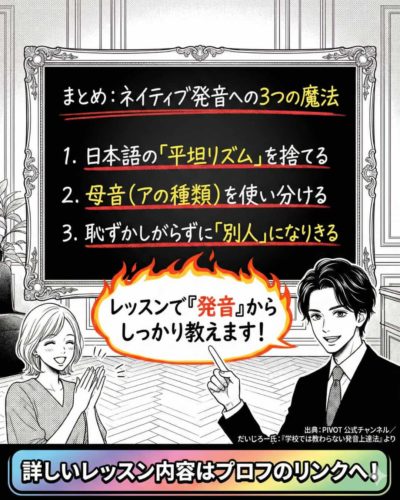 そんな「日本人特有の平坦なリズム」から脱却して、ネイティブのようなかっこいい発音を手に入れるための「3つの魔法」を漫画で紹介しました。