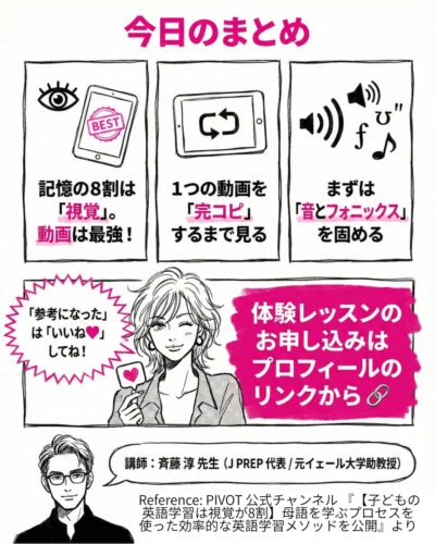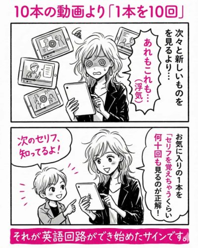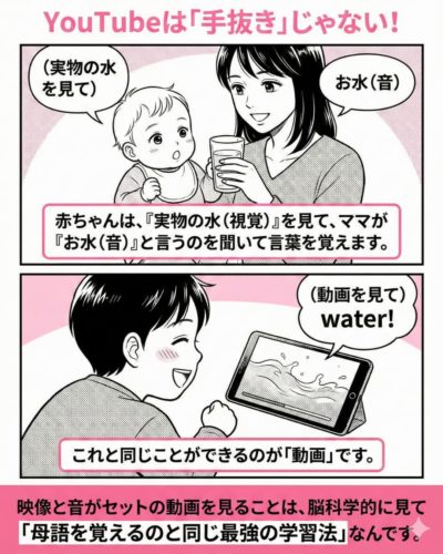 焦ってアウトプットを求める必要はありません。 まずは「インプット90%」! コップの水が溢れるまで、良質な動画をたっぷり注いであげてください🥛💦